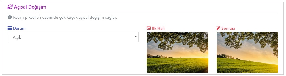 Açısal Değişim: WBots'a özel olarak geliştirdiğimiz bu fonksiyon ile iki resime de baktığınızda bakış açısı değişikliğini son derece net bir şekilde anlayacağınızı düşünüyoruz. Böylece değişen açılar çok yüksek oranda özgünleştirme sağlayacaktır.