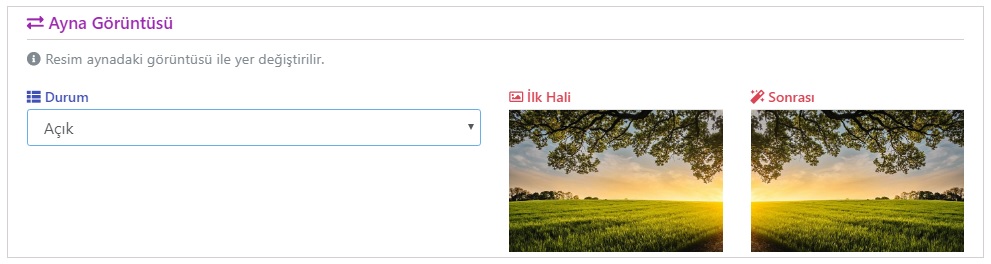 Ayna Görüntüsü: İlgili resim için yatay olarak zıt bir görüntü oluşturur veya tabiri caizse ayna görüntüsünü oluşturur. Metin içermeyen resimler için yüksek performans gösterebilmektedir. Ancak tek başına özgünleştirme için yeterli değildir.