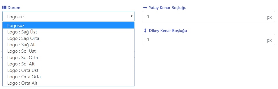 Öne Çıkartılmış Görsellerde veya İç Resimlerde Logonuzun hangi pozisyonda gözükeceğini ve kenar boşluklarının kaç piksel olacağını buradan belirleyebilirsiniz. Bu noktada logonuzun büyük olması veya resim boyutlarından taşması durumunda resim üzerinde gösterilmeyeceğini unutmamak gerekiyor.