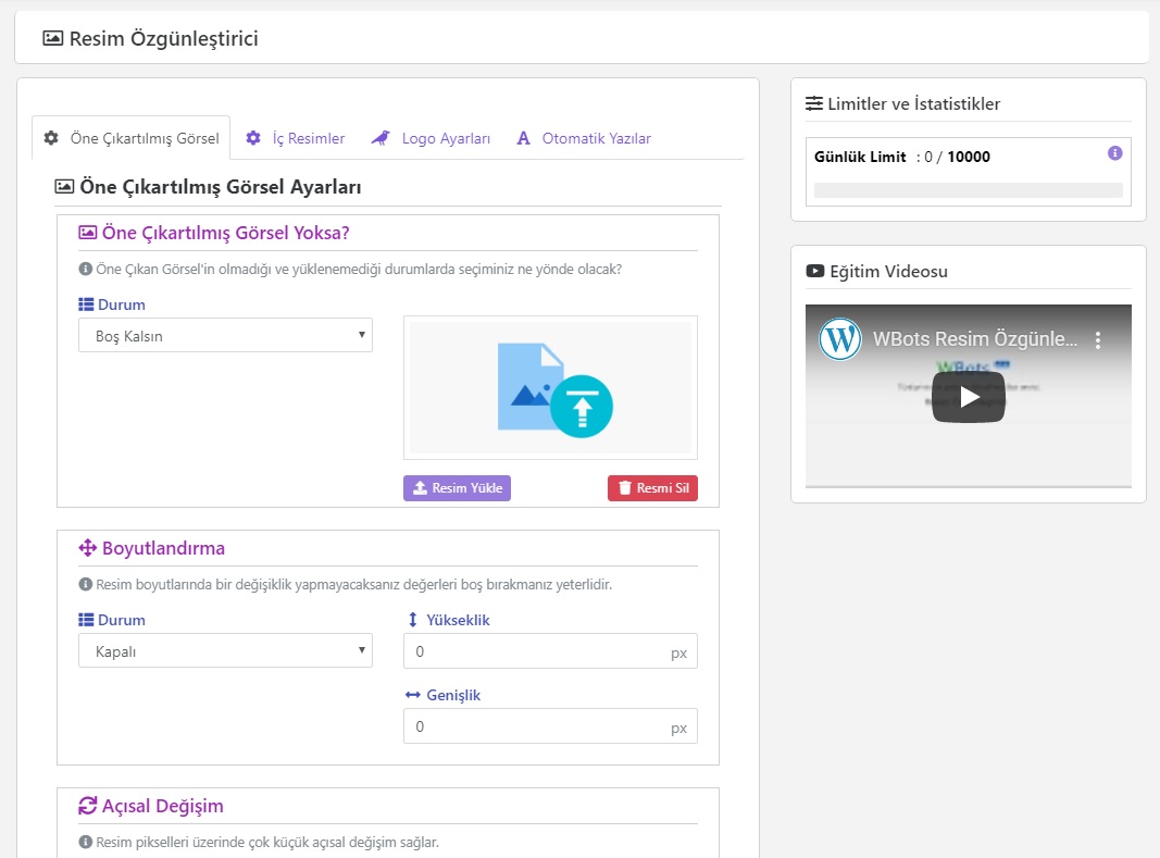 Uzun bir araştırma ve kodlama sürecinin sonunda nihayet resim özgünleştirici modülünü devreye aldık. Böylece wordpress için dizayn etmiş olduğumuz WBots ile bot içeriklerindeki; tüm öne çıkartılmış resimler ile birlikte içerik resimlerini de özgünleştirebileceksiniz.