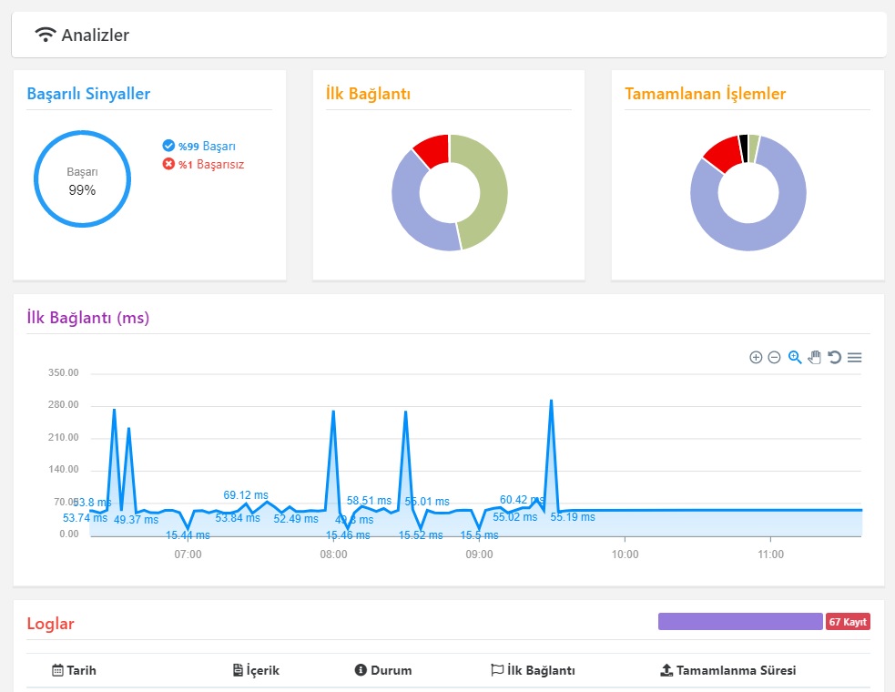 WBots ile siteleriniz arasındaki bağlantının kalitesini ölçmek ve olası hata durumlarını kayıt altına alıp, bunları size raporlamak için Sinyal Analiz Sistemini kurguladık. Bu sayede bir problem olduğunda direkt olarak sizlerde bunun sebebini sinyal analiz sistemi loglarıyla görebileceksiniz.