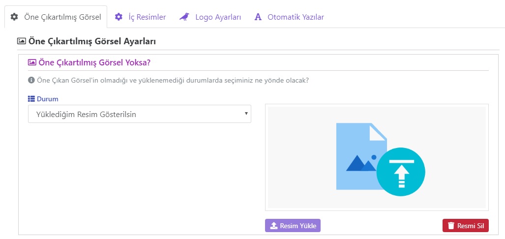 Not: Varsayılan öne çıkartılmış görsel belirlenmediğinde bu buton gözükmeyecektir.